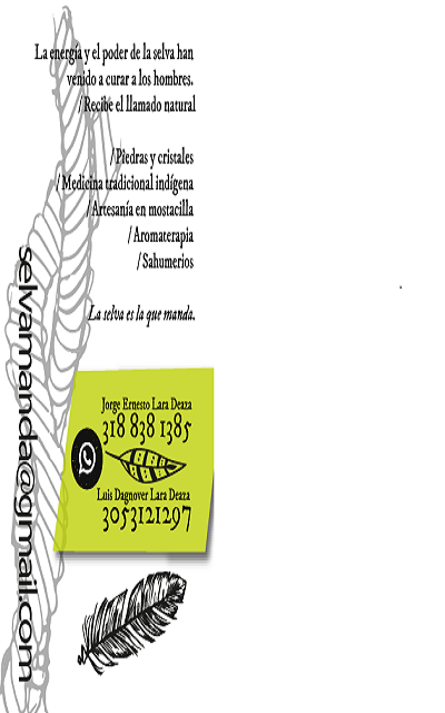 Desde tiempos ancestrales el manejo de las energías y bienestar energético han cobrado gran auge en la sociedad. Es por esto que desde selva manda, a través de varios elementos, como piedras, cristales, medicina tradicional indígena, aromaterapia, sahumerios, artesanías en mostacilla entre otros.Queremos lograr una armonía entre las personas y los entornos, para que obtengan un saber y herramientas creando un equilibrio en su energía y en su ser y así desarrollar una relación de gozo con la vida