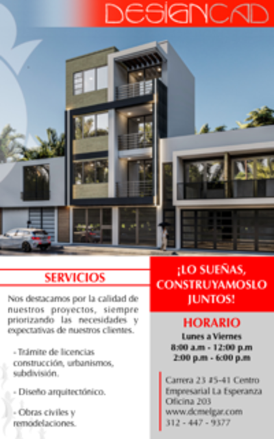 Somos una empresa con más de 16 años de experiencia en el sector de la arquitectura, el diseño y la construcción; llevando a cabo una gran variedad de proyectos en la región, ofreciendo en cada uno de ellos; calidad, exclusividad, cumplimiento y confianza. DesignCAD nace de una actividad académica de su actual gerente para una clase de creatividad empresarial; en la cual se debía generar un proyecto que supliera una necesidad de ese momento en la ciudad de Ibagué.