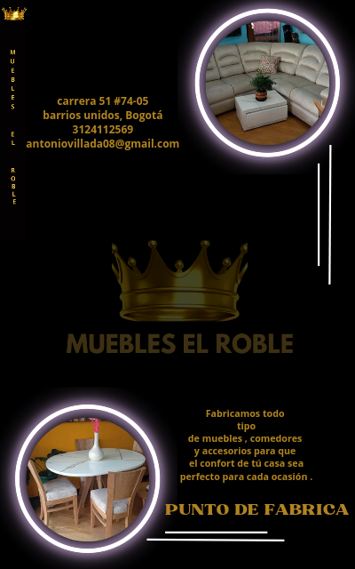 Empresa dedicada a la fabricación de todo tipo de muebles para el hogar dando cumplimiento y calidad,asegurándole al cliente una inversión segura Como empresa de línea de muebles sabemos lo importante que es para cualquier persona el diseñar muebles sobre medida y sobre diseño,por eso contamos con una amplia gama de ideas para guiar y así tomar una una decisión acertada.Somos punto de fábrica,contamos con fábrica de tapicería y ebanistería.Manejamos envíos a nivel local, nacional e internacional